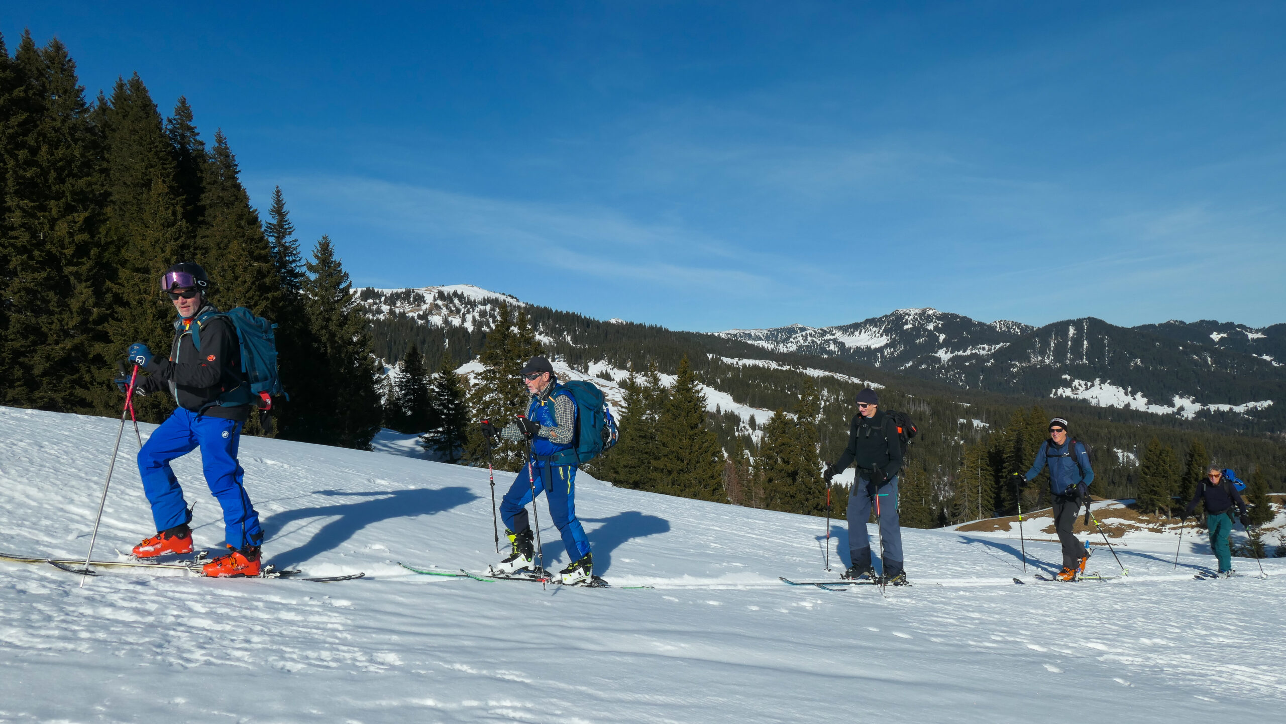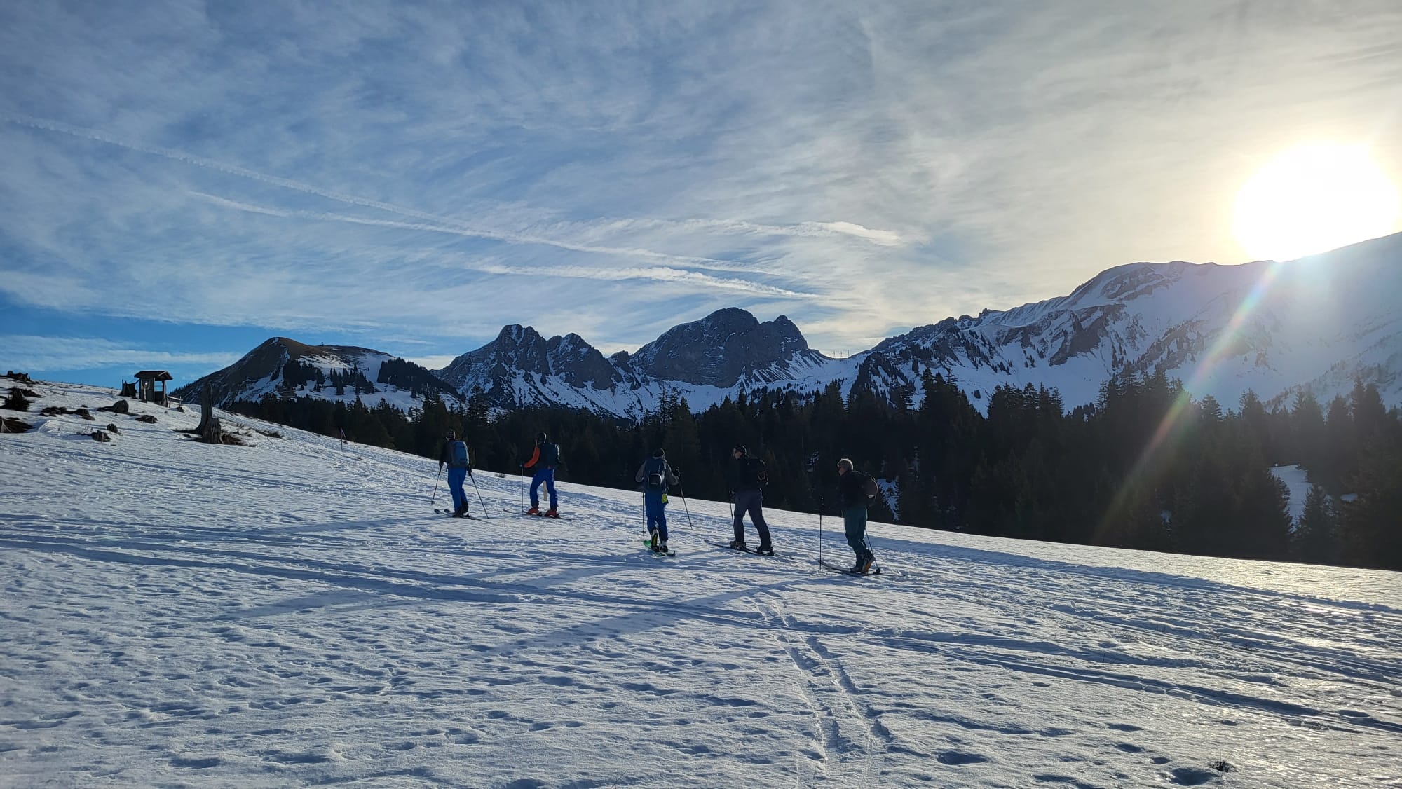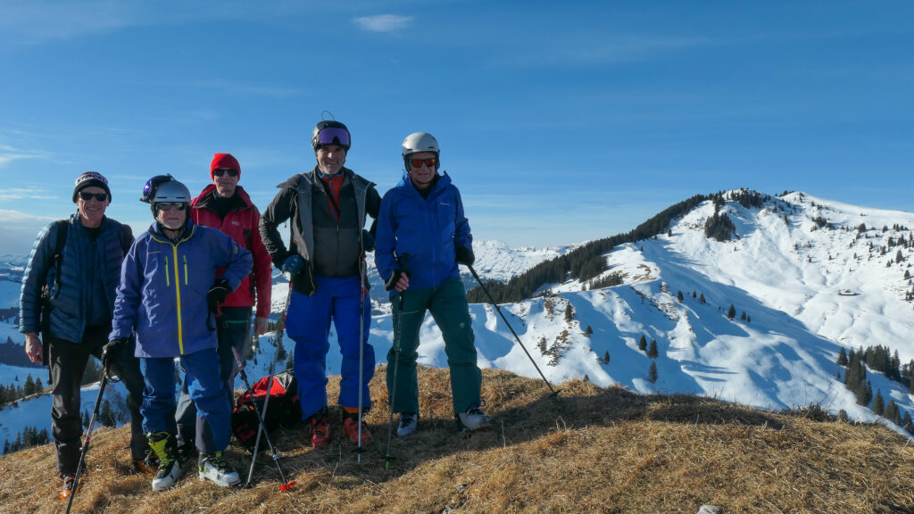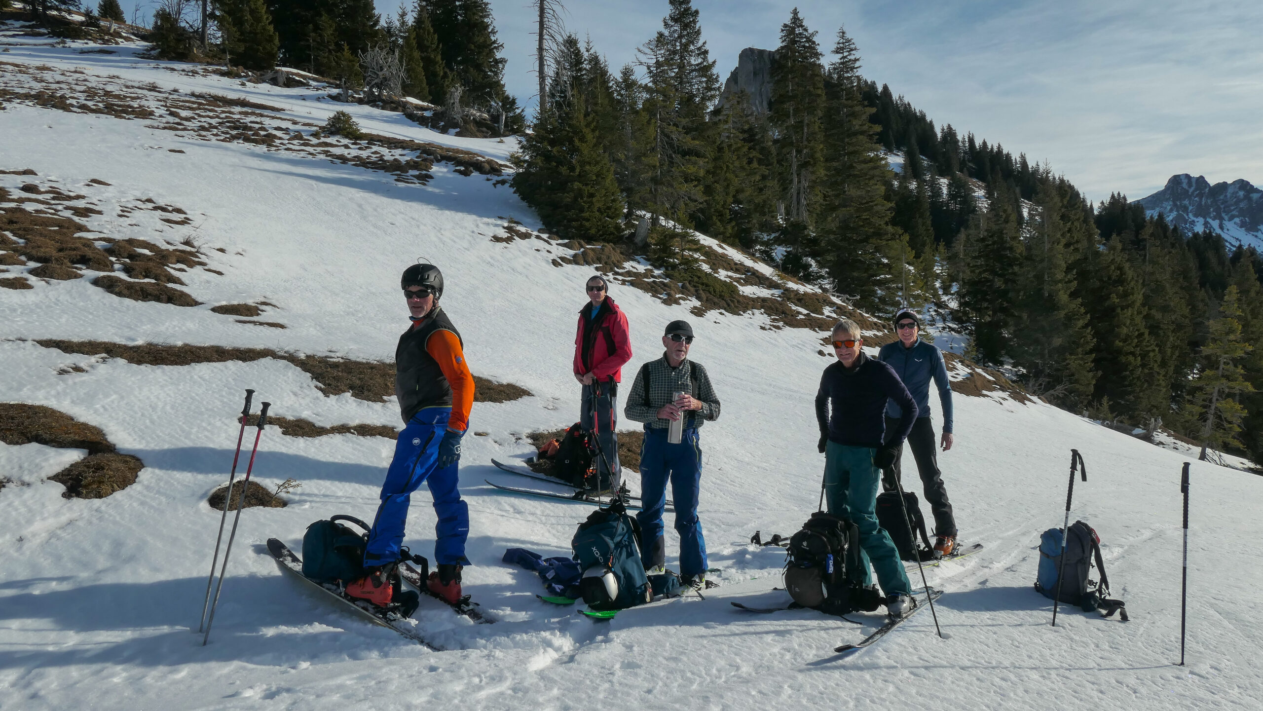 Zur zweiten Skitour des ESV Luzern in dieser Wintersaison starten wir an der Barriere der Panoramastrasse hinter Sörenberg. Schon bald wird es steil und die aperen Stellen in der Schneedecke werden immer grösser. Werner führt uns aber gekonnt in guter Spur hoch gegen den Nünalpstock und wir erreichen den Gipfel, ohne die Ski abziehen zu müssen. Die Sonne lacht vom wolkenlosen Himmel und die Temperatur ist angenehm. Was wollen wir noch mehr? Natürlich, eine durchgehende Schneedecke für die Abfahrt.